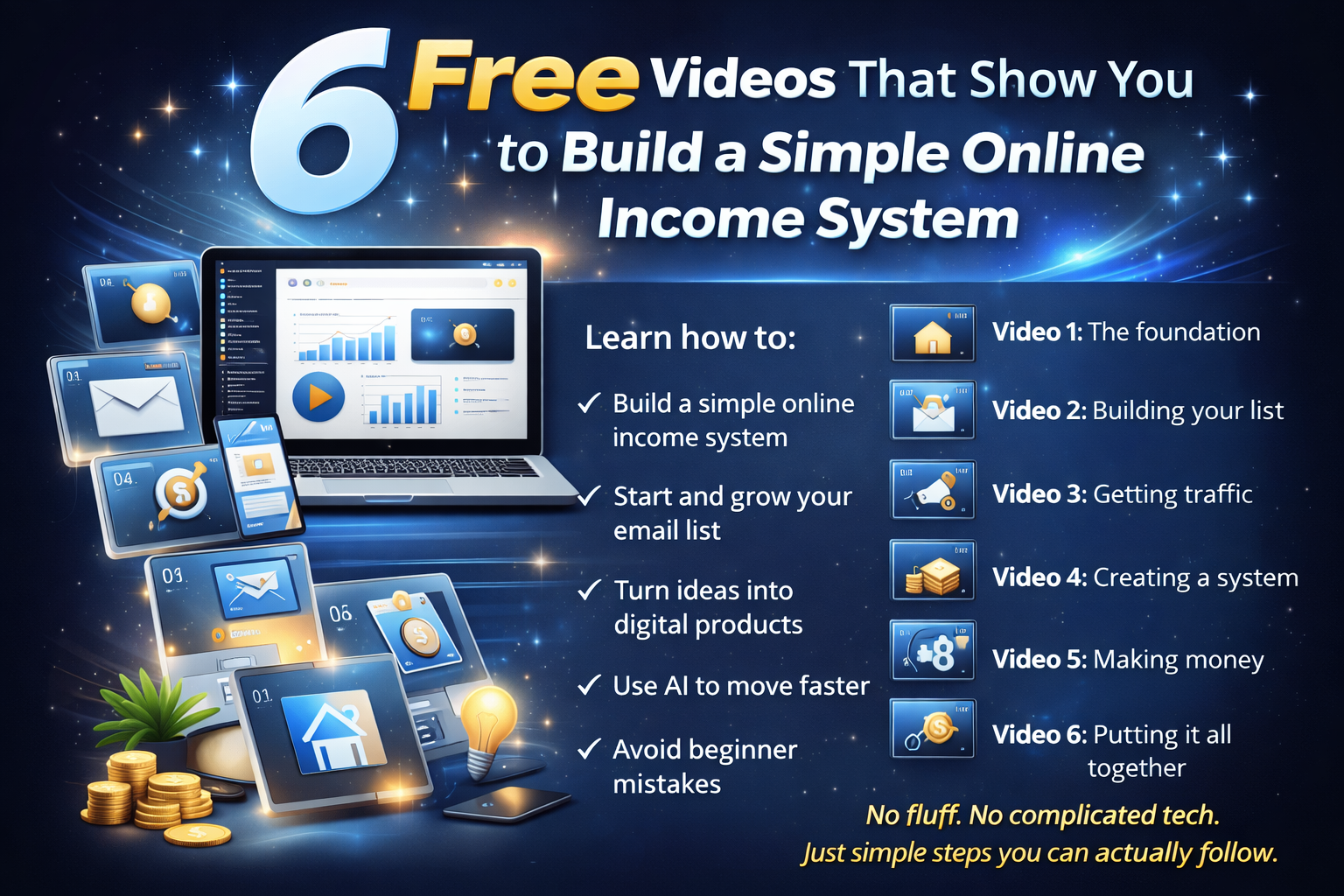 Free Video Training Get instant access to 6 free videos that show you how to build a simple online income system. Success! Name Email Watch Your Free Videos